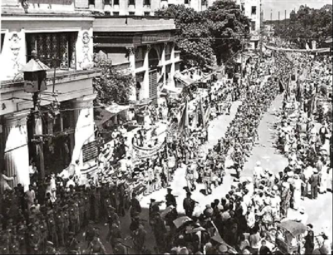 解放军入城部队经过广州长堤。